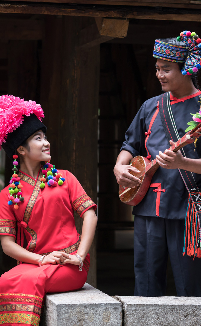 云南的布依族人口近5.5萬人,主要聚居于曲靖、文山、紅河幾個州、市的10余個縣境內,其族源歸為古代“百越”,曾有過“謝蠻”、“仲家”等稱代,是百越族系中駱越人的一支。農耕民族,以農歷紀年,物產豐富,自然條件較好;有語言,通行漢文,文學興盛,歌舞升平,民間信奉“萬物有靈、多神主宰”的原始宗教,代表節(jié)慶為祭社神節(jié)(六月初六)。布依族寨子傍水而建,兩幢民居忠于民間的構建方式,實現(xiàn)了邛籠系與板屋系建筑手法...